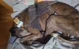 Está un poco delgada y solo quiere dormir y si es posible no moverse.