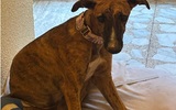 Penny, la Galguita de 5 meses que recogimos hace casi dos meses y que operamos de fractura espiroidea de tibia de la pata trasera derecha, va mejorando poco a poco.